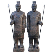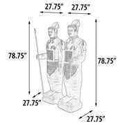 Bring the culture of 200 BC China with this life-size replica Terracotta Warrior Set. Each warrior stands 78.75" tall with an authentically-sculpted black earthy finish. Crafted from durable fiberglass and cast stone reinforced material, they are individually hand cast and hand-finished to guarantee a quality and richness. Perfect for outdoor gardens or indoor decor, this replica set is a faithful recreation of the famous Terracotta Army that protected the first emperor of the Qin Dynasty centuries ago.