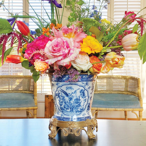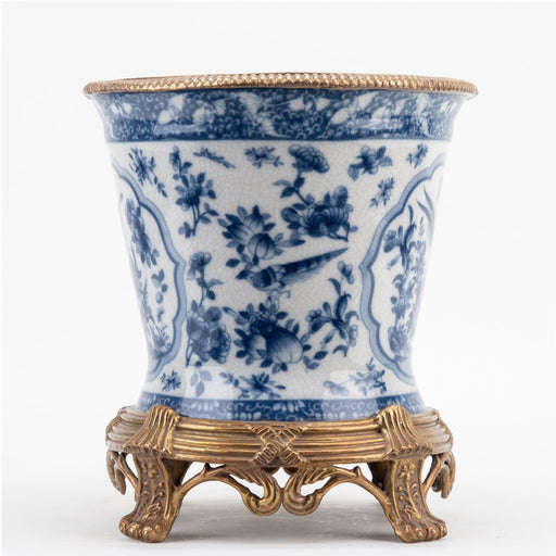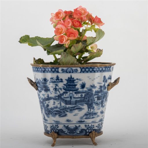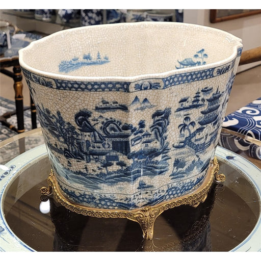 View Full DetailsBlue Willow Cachepot Planter-Porcelain & Bronze
