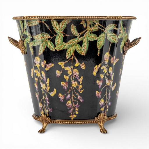 View Full DetailsMidnight Blossom Cachepot Planter-Porcelain & Bronze