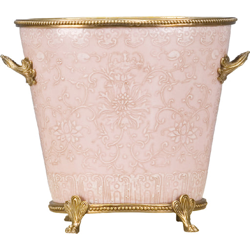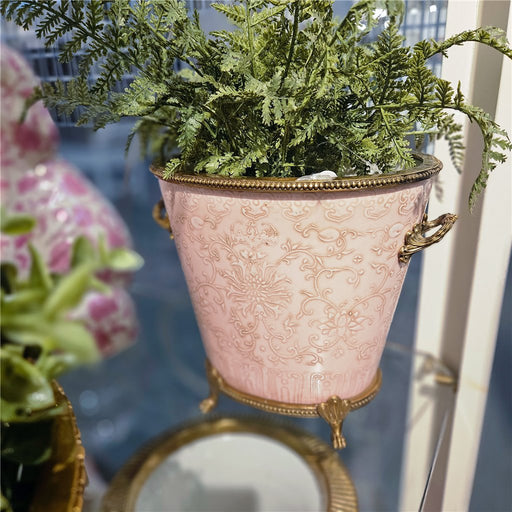 View Full DetailsPink Embossed Floral Cachepot Planter-Porcelain & Bronze