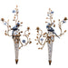 Blue & White Parrot Candle Wall Sconce Pair-Porcelain & Bronze