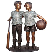 Celebrate the energy and spirit of youth with this charming bronze sculpture of two pals ready to play. Capturing a lively moment of anticipation, the piece features two young boys ready for fun—one gripping a baseball bat, the other holding a basketball—perfectly embodying the excitement of play, friendship, and carefree days.