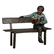 Young Boy Reading on Bench Bronze Sculpture
