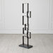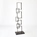 This striking floor sculpture commands attention with its interwoven geometric squares rendered in a sophisticated gun metal finish. Standing at an impressive 71 inches, it serves as a bold architectural statement piece for contemporary interiors. The dynamic interplay of bent forms creates visual depth and movement, while the muted metallic palette complements modern decor seamlessly. Perfect for galleries, upscale residences, or commercial spaces seeking refined artistic expression.