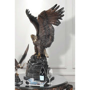 Bald Eagle on Rock Bronze Sculpture on Marble Base