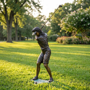 Crafted from high-quality bronze, this sculpture showcases a striking two-tone finish that enhances its intricate details—from her balanced posture to the natural flow of her swing. The dual tones create depth and visual interest, resulting in a lifelike and engaging display.