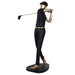 This striking floor sculpture brings contemporary elegance to any modern space. Featuring a sleek golfer silhouette rendered in a sophisticated gold and black finish, it serves as both functional art and a conversation piece. The minimalist design complements contemporary interiors while adding visual interest and dimension to entryways, commercial spaces, or offices.