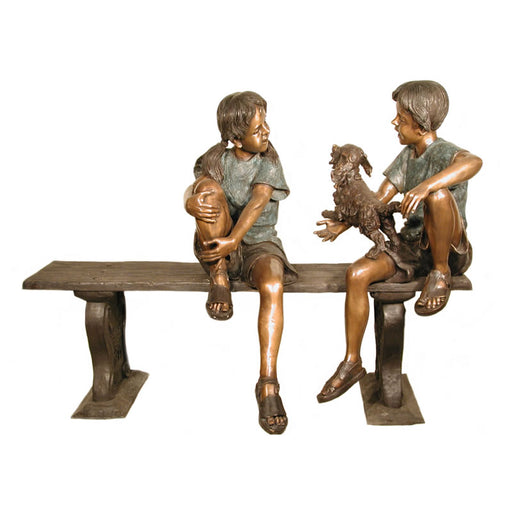 View Full DetailsKids on Bench with Dog Bronze Sculpture