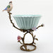 Delicate porcelain craftsmanship meets refined metalwork in this exquisite decorative basin. Hand-painted finch and blooming flowers adorn the rounded bowl, while an ornate bronze ormolu tree branch serves as both sculptural base and functional support. This piece exemplifies the marriage of natural beauty and artisanal detail, making it an ideal accent for collectors who appreciate fine decorative arts and botanical-inspired design.