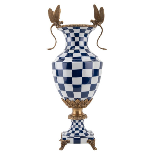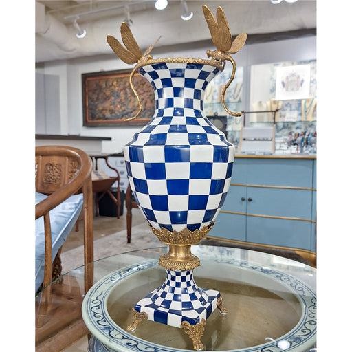 View Full DetailsBlue & White Dragonfly Vase-Porcelain & Bronze