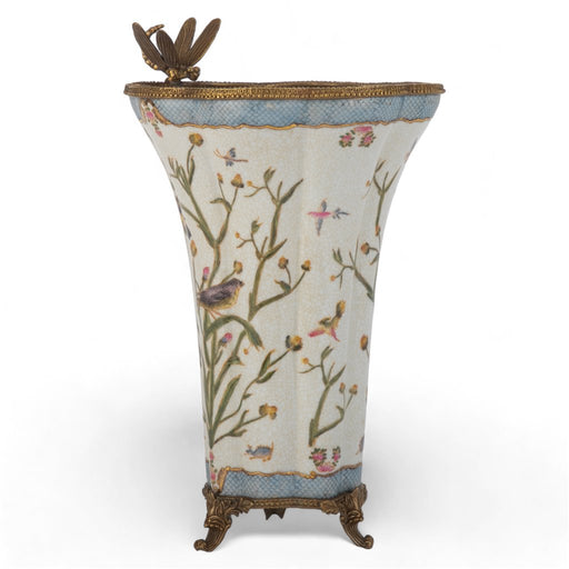 View Full DetailsDragonfly & Floral Vase-Porcelain & Bronze