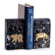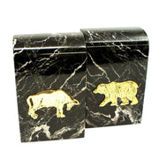 Stock Market Bull & Bear Bookends - Black Zebra Marble