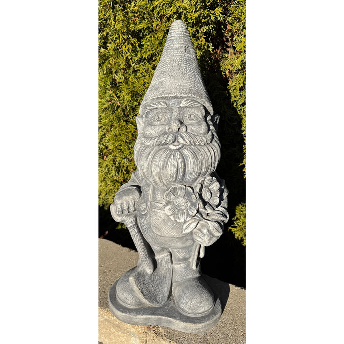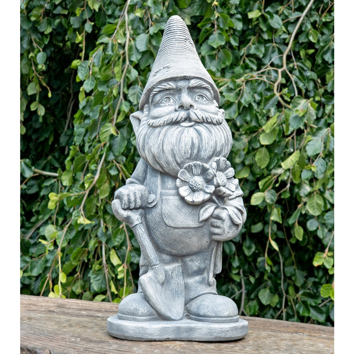 This spirited Gardener Garden Gnome is ready to join your backyard adventures! Meticulously handcrafted from sturdy cast stone with a sophisticated Greystone finish, this charming little helper adds a whimsical touch to any garden space. Perfect for bringing personality to your outdoor sanctuary!.