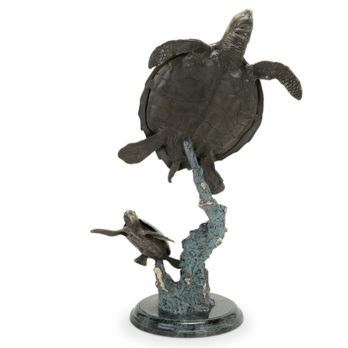 Mother and Baby Sea Turtles Brass Sculpture on Marble Base