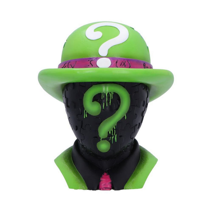 Delight any DC Comics collector with this bold Riddler bust, expertly crafted with meticulous detail and official licensing. Highlighting the infamous Batman villain, this striking piece makes a daring statement in any collection. Lift the Riddler’s hat to discover a hidden box compartment, blending mystery and function for fans who crave something truly unique.